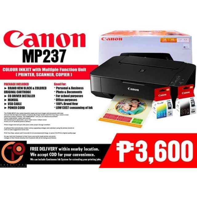 Canon pixma mp237 printer driver is licensed as freeware for pc or laptop with windows 32 bit and 64 bit operating system.